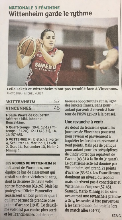 Les SF1 signent une dixième victoire face à Vincennes qui leur permet de conserver leur deuxième place au podium et de voyager sans pression le week-end prochain à Orly